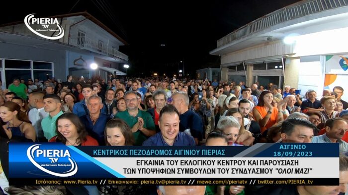 Με παρουσία πλήθους κόσμου έγιναν τά εγκαίνια του εκλογικού κέντρου του υποψηφίου δημάρχου Πύδνας-Κολινδρού Ευάγγελου Λαγδάρη την Δευτέρα 18 Σεπτεμβρίου και ώρα 8 το βράδυ στον Κεντρικό Πεζόδρομο του Αιγινίου Πιερίας.