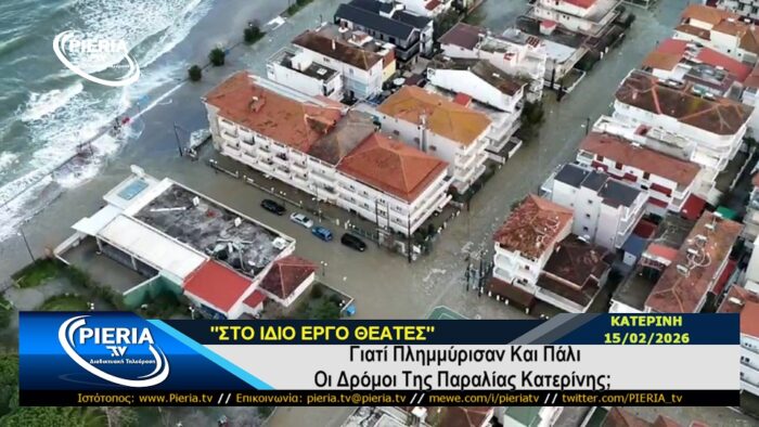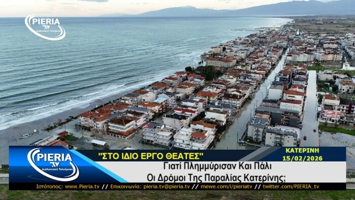 Πέραν τούτου κάθε έτος γινόμαστε θεατές του ίδιου έργου με τις πλημμύρες τόσο της Παραλίας όσο και της Ολυμπιακής Ακτής της Κατερίνης και το ερώτημα παραμένει, πότε άραγε θα ευαρεστηθούν οι αρμόδιοι να πράξουν το καθήκον τους απαλλάσσοντας τους κατοίκους από το καταστροφικό μένος της θάλασσας και της νεροποντής που συχνά λαμβάνουν χώρα στον τόπο μας;